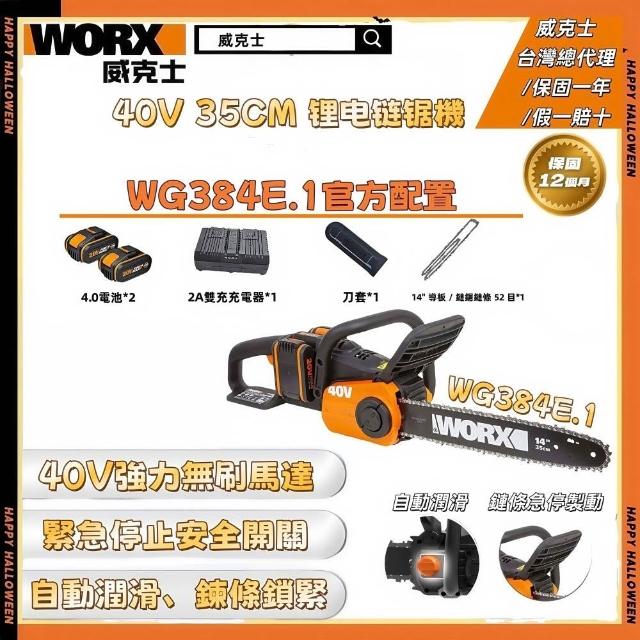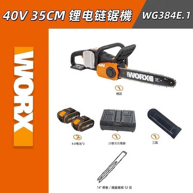 WORX 威克士40V 35cm 鏈鋸 鏈鋸機 切割機 電動鏈鋸 無刷鋰電鏈鋸機 雙4.0電池 WG381E.1 WG384E.1