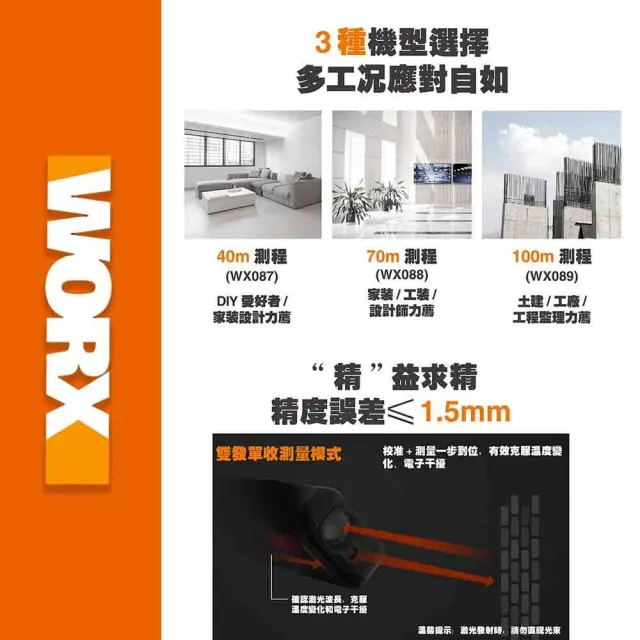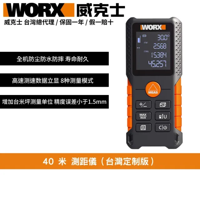 WORX 威克士40M 激光 坪數 台尺 台坪 鐳射 探測儀 水平儀 電子尺 測量尺 測距儀 雷射儀測距儀 可測平方公尺 台灣定制版 WX087.1