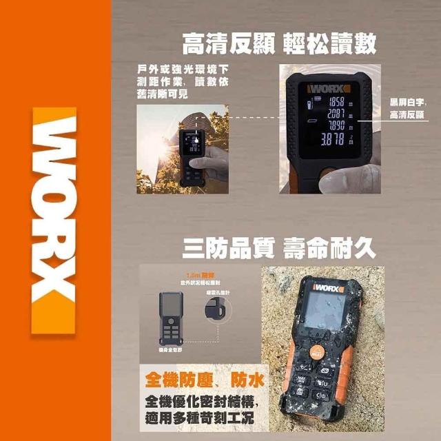 WORX 威克士40M 激光 坪數 鐳射 探測儀 水平儀 電子尺 測量尺 測距儀 雷射儀測距儀 可測平方公尺 台灣定制版 WX087.1