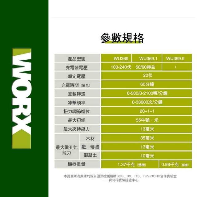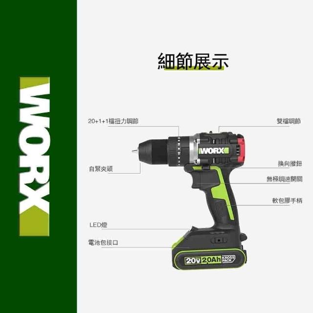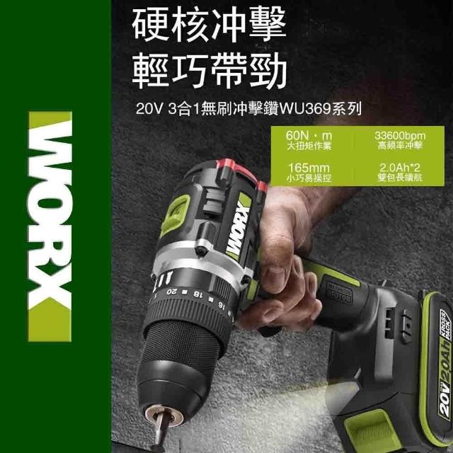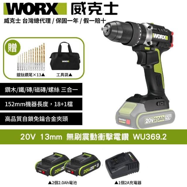 WORX 威克士20V 13mm 電鑽 衝擊鑽 無刷電機 起子機 鋰電無刷 無刷鋰電衝擊電鑽 可鑽牆 傢俱組裝 鑽孔 WU369.2