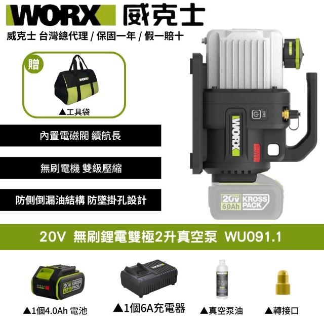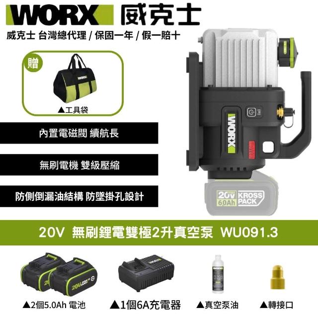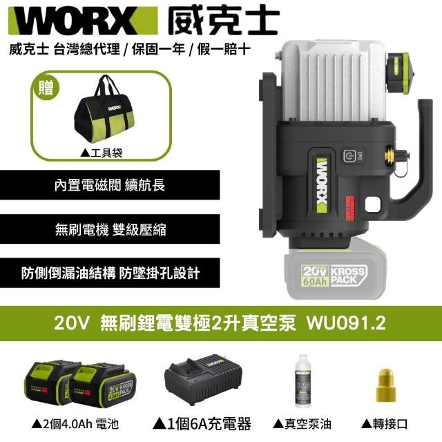 WORX 威克士20V 1L 2L 真空機 無刷 冷氣安裝 冷媒真空機 無刷锂电 無刷锂电双极2升真空泵 WU090 WU091