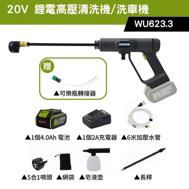 WORX 威克士20V 高壓清洗機 便攜式清潔機 鋰電高壓洗車機 鋰電清洗機 無線高壓水槍 無線高壓洗車機WU623.1