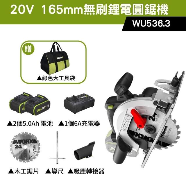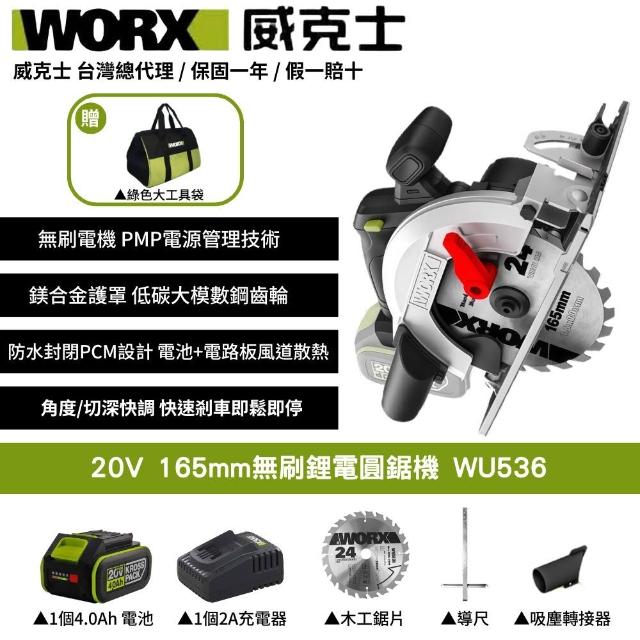 WORX 威克士20V 165mm 圓鋸機 切割機 電圓鋸 電鋸 無刷 無碳 鋰電 電圓鋸機 無刷電機 無刷鋰電圓鋸機WU536