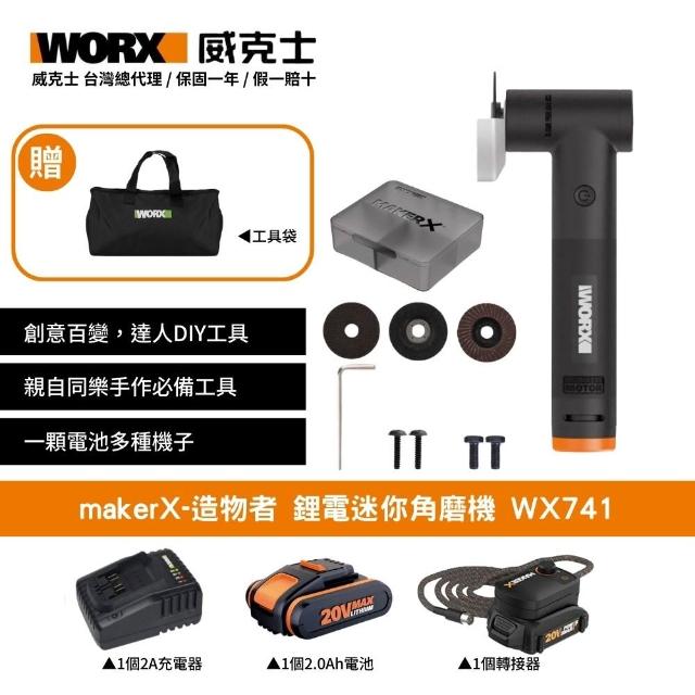 WORX 威克士20V 角磨機 砂輪機 鋰電迷你角磨機 迷你砂輪機 切磨 切割 磁磚 PVC管 除鏽 拋光 打磨 迷你 造物者 Maker-X系列 WX741