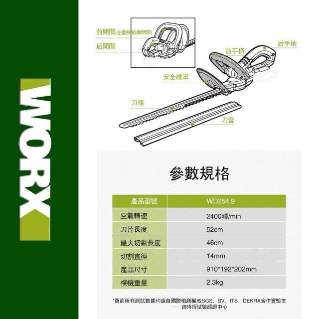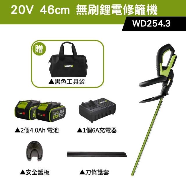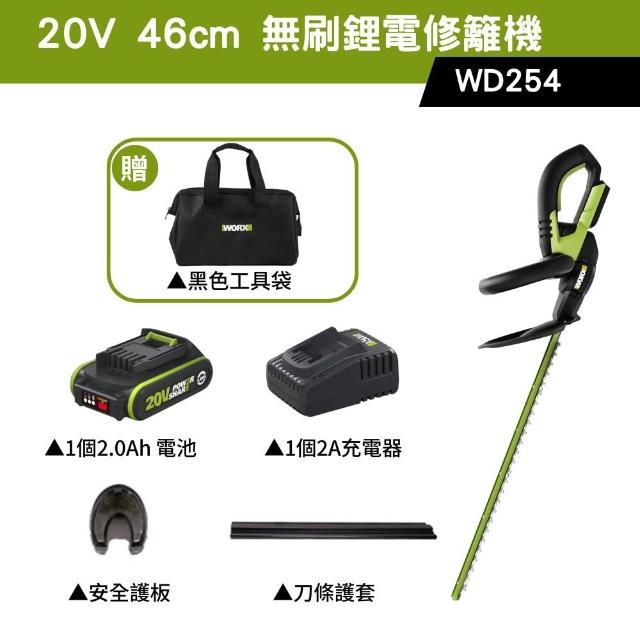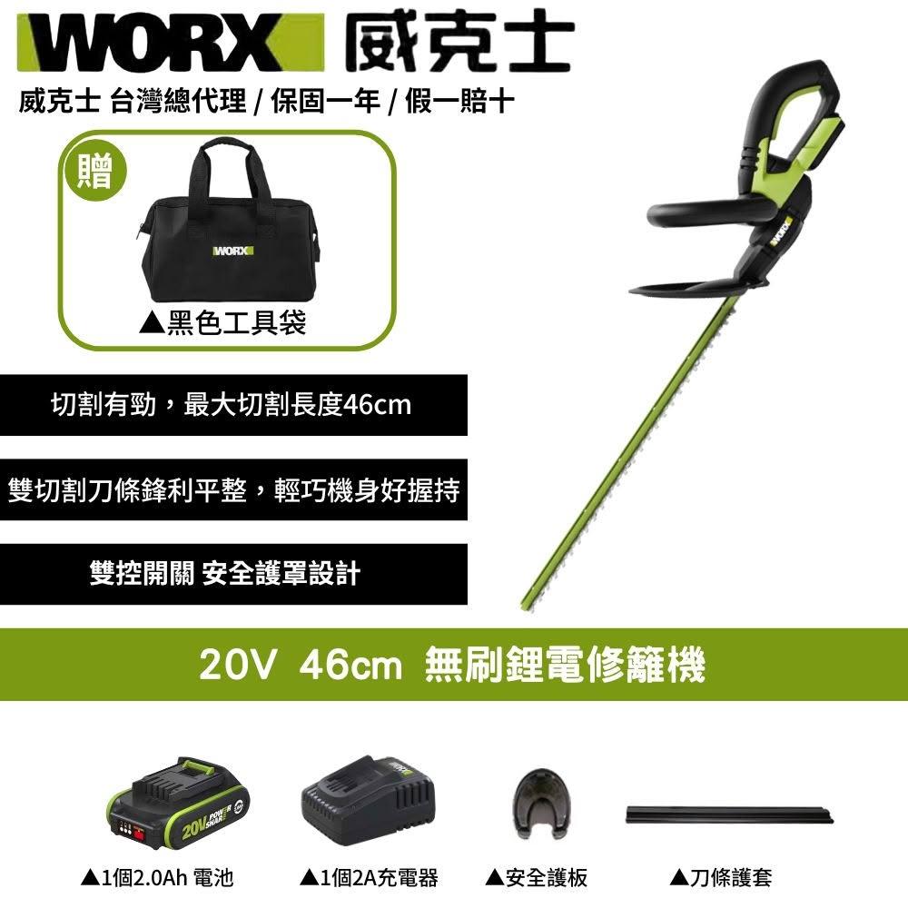 WORX 威克士20V 46cm 修籬機 籬笆剪 修枝 園藝 電動工具 鋰電籬笆機 多功能修剪機 無刷鋰電修籬機 WD254