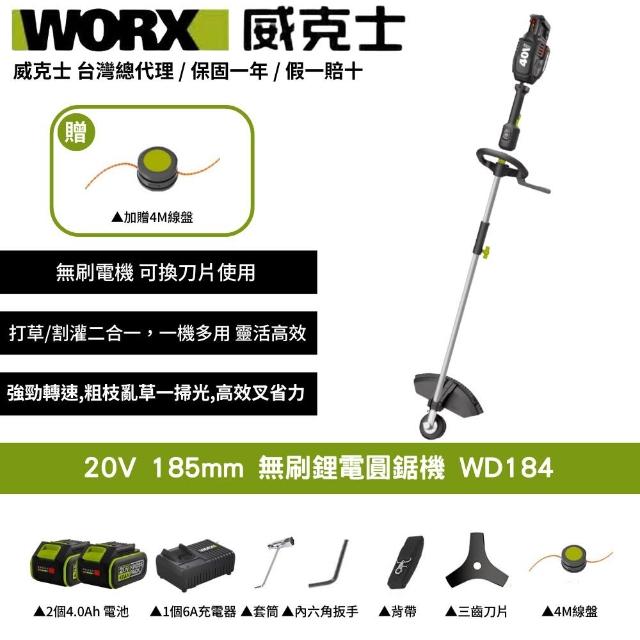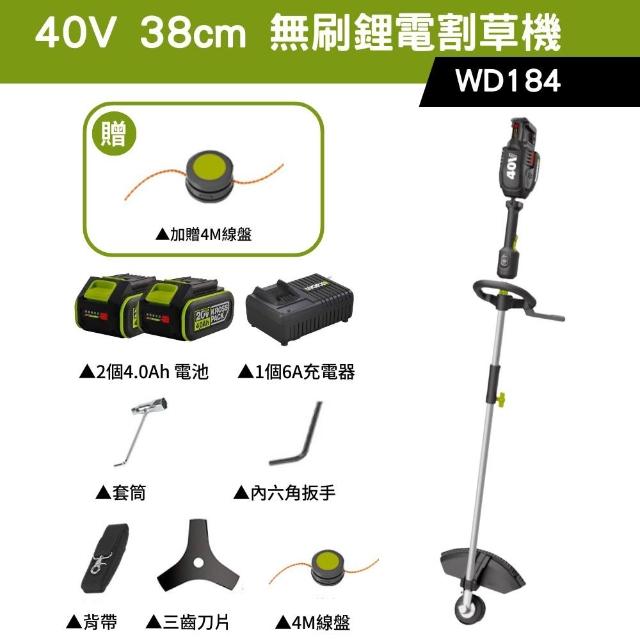 WORX 威克士40V 38cm 割草機 打草機 二合一 無刷鋰電 打草 多功能 園藝 割灌割草機 無刷鋰電割草機 WD184
