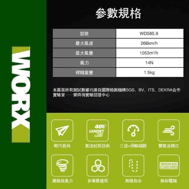 WORX 威克士40V 鼓風機 吹葉機 渦輪式 無刷 鋰電 吹塵 打掃 園藝工具 無刷鋰電吹風機 超大流量吹葉機 WD585