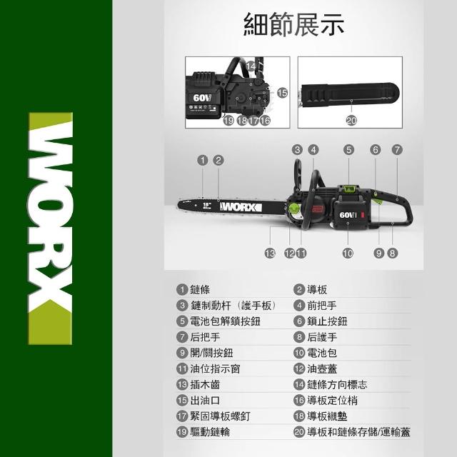 WORX 威克士60V 45cm 鏈鋸 電鋸 鏈鋸機 割草機 鋰電 無刷 園藝 電動鋸子 電鏈鋸 鋰電電鏈鋸 無刷鋰電鏈鋸 鋰電手持鏈鋸 WD368E