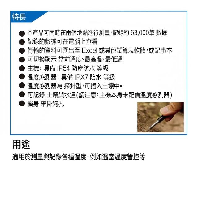 - 用於測量與記錄各種溫度等