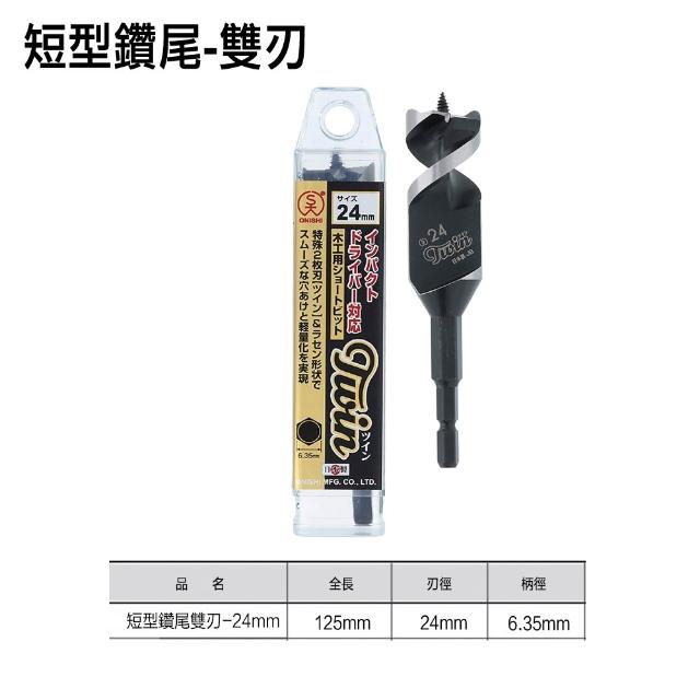 ONISHI 大西 短型鑽尾 雙刃 24mm 六角頭 鑽尾 木工 木工鑽尾 六角柄鑽尾 木工鑽頭