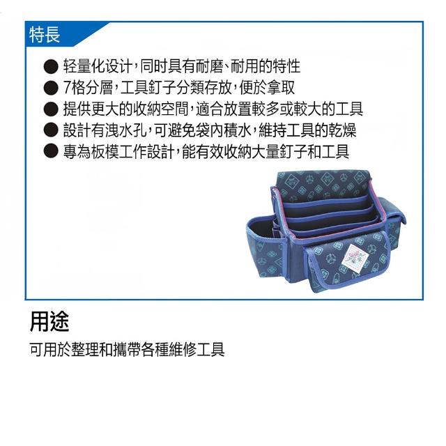 菊堂 特多龍7格釘袋 14號 釘袋 特大,藍.紅 收納袋 工具包 板模釘袋 釘袋腰包 工具釘袋 釘袋工具袋