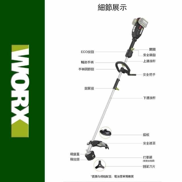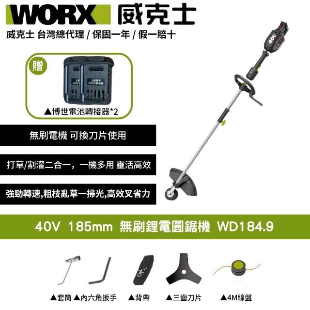 WORX 威克士可用博世電池 割草機 打草機 二合一 無刷鋰電 打草 多功能 園藝 割灌割草機 WD184.9+F48