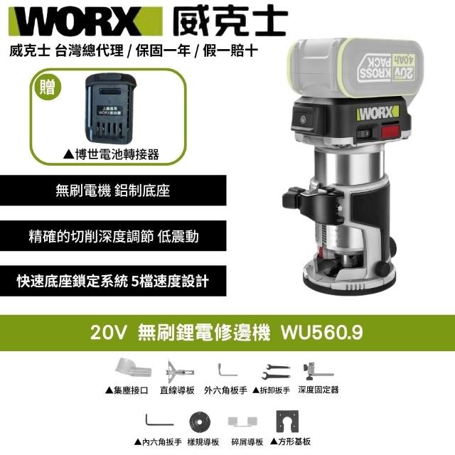 WORX 威克士可使用博世電池 美修邊機 鋰電 路打 無刷 木工修邊刀 開槽神器 電木 銑木板 鋁塑板 WU560.9+F48