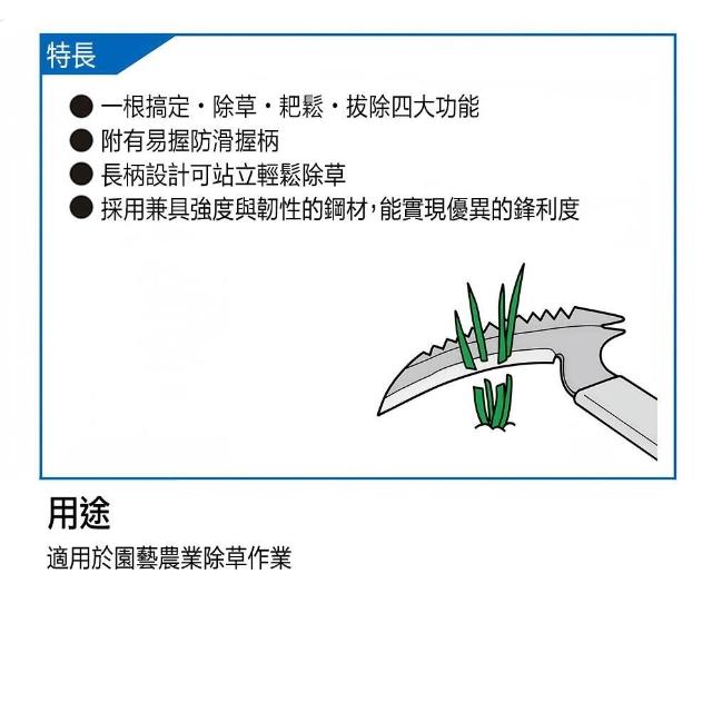 - 長柄設計可站立輕鬆除草