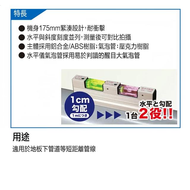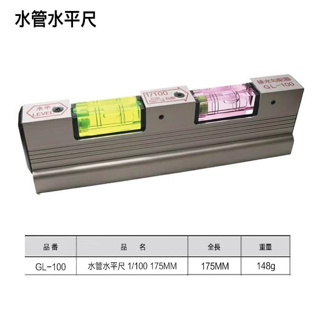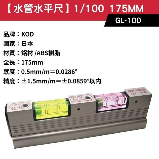 KOD 水管水平尺 1/100 175MM 水平尺 氣泡式 水平儀 氣泡水平儀 日本水平尺 日本製 GL-100