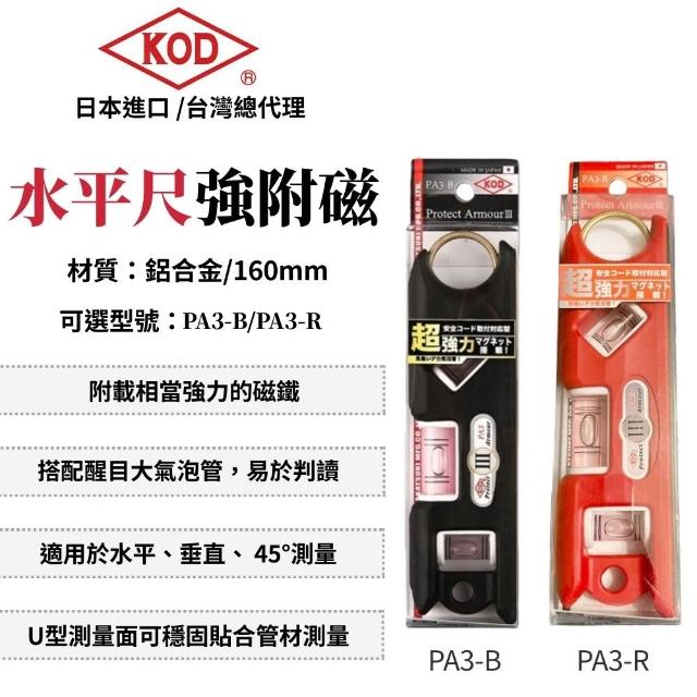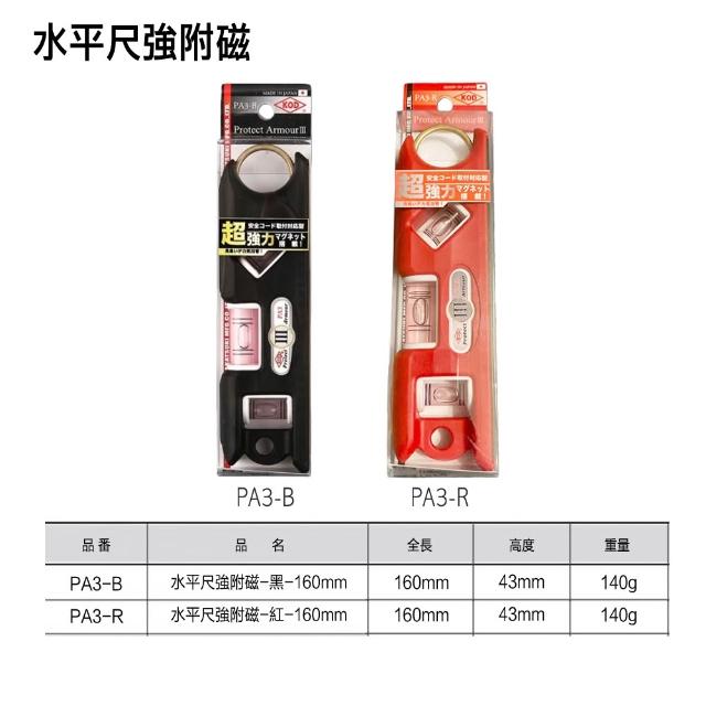 KOD 水平尺強附磁 黑/紅 160mm 附磁 水平尺 水平儀 磁吸水平尺 強磁水平尺 日本製 PA3-B PA3-R