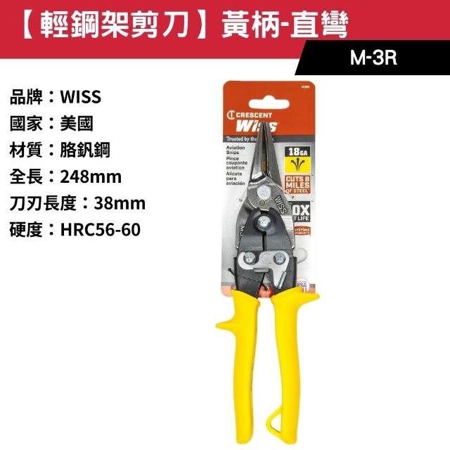 WISS 輕鋼架剪刀-黃柄-直彎 鐵皮剪 浪板剪 鐵線剪 鐵網剪 鐵皮剪刀 鐵網剪刀 美國製 M-3R