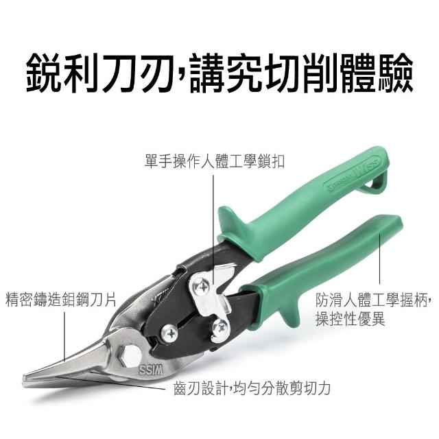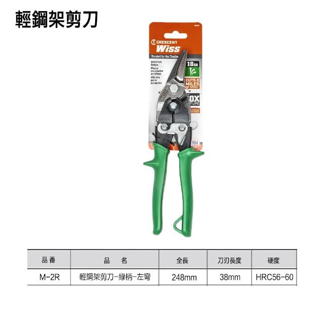 WISS 輕鋼架剪刀-綠柄-左彎 鐵皮剪 浪板剪 鐵線剪 鐵網剪 鐵皮剪刀 鐵網剪刀 美國製 M-2R