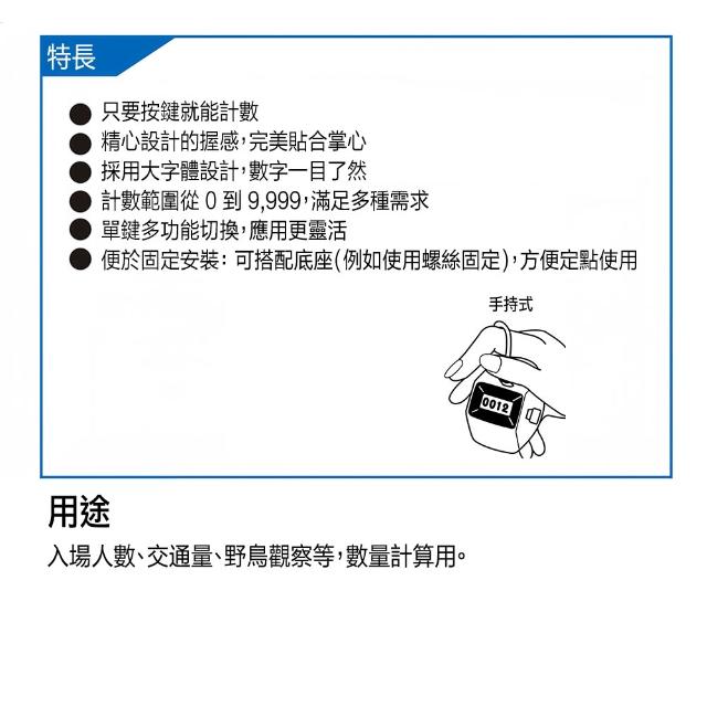 - 廣泛計數範圍,滿足多種需求