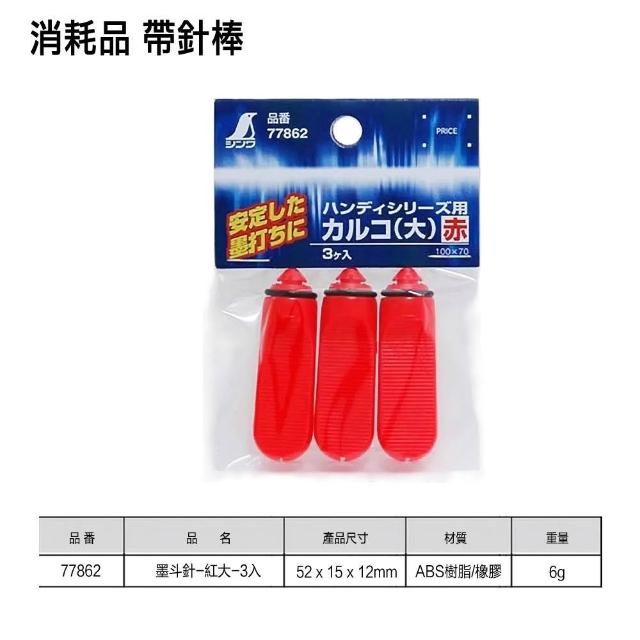 SHINWA 鶴龜SHINWA 鶴龜 墨斗針-紅大-3入 耗材 帶針棒 替換品 消耗品 安全墨斗針 墨斗/粉斗用 日本製 77862