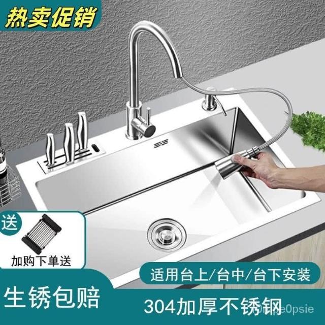 加厚304不銹鋼水槽 單槽臺中盆 廚房手工家用大水池 洗菜盆 洗碗槽 單盆 洗碗槽 大水池 水槽 廚房水槽 洗手槽