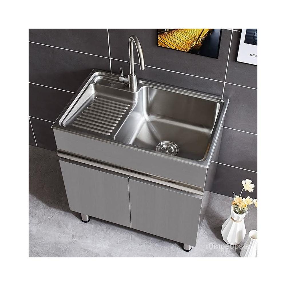 高顏值不銹鋼洗衣櫃陽臺水槽櫃一體帶搓洗手池洗臉盆實木櫃組閤落地洗手池高顏值實用