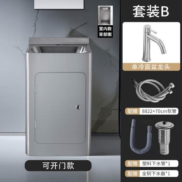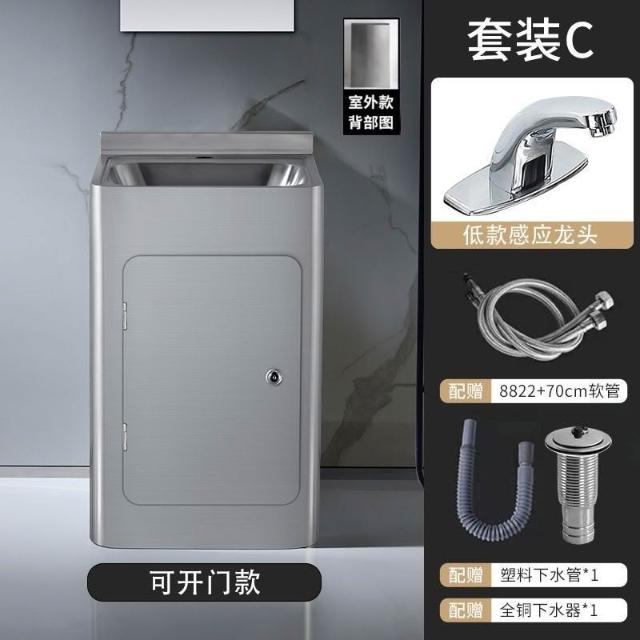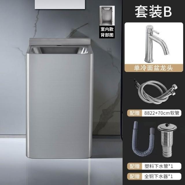 不銹鋼水槽 含蓬蓬頭 室內陽臺戶外一體落地式洗臉盆 立柱盆 洗手臺 醫院車間水槽洗手盆 水池