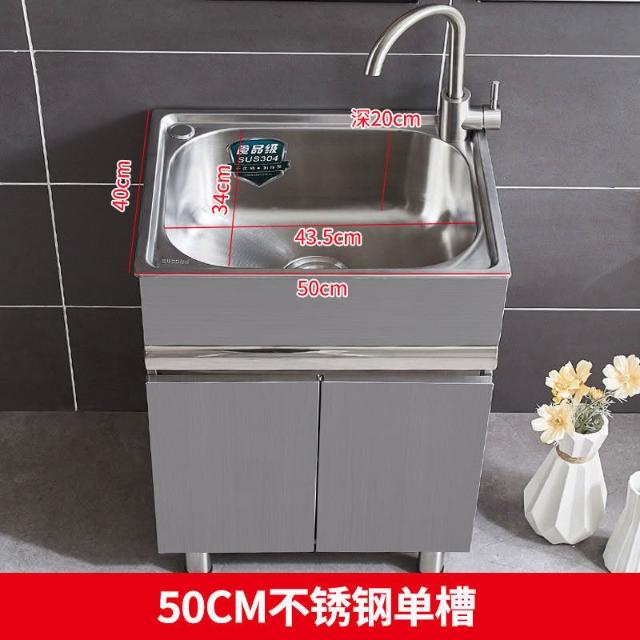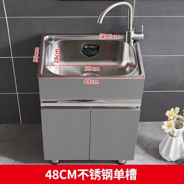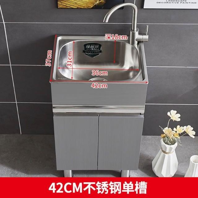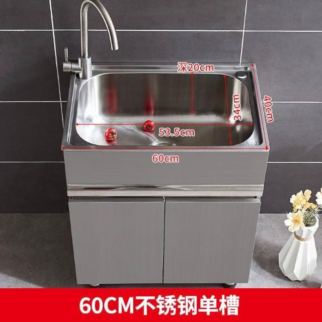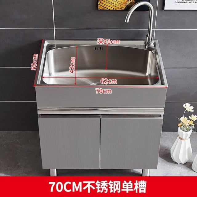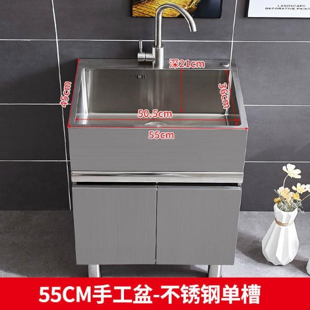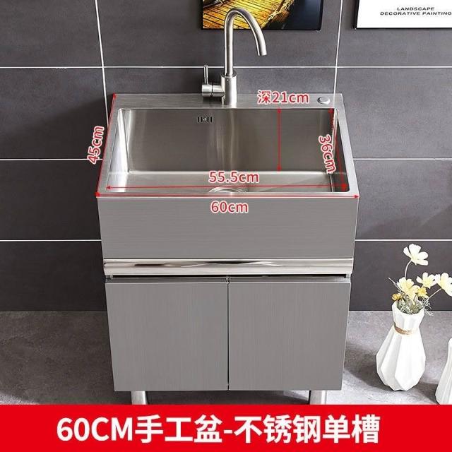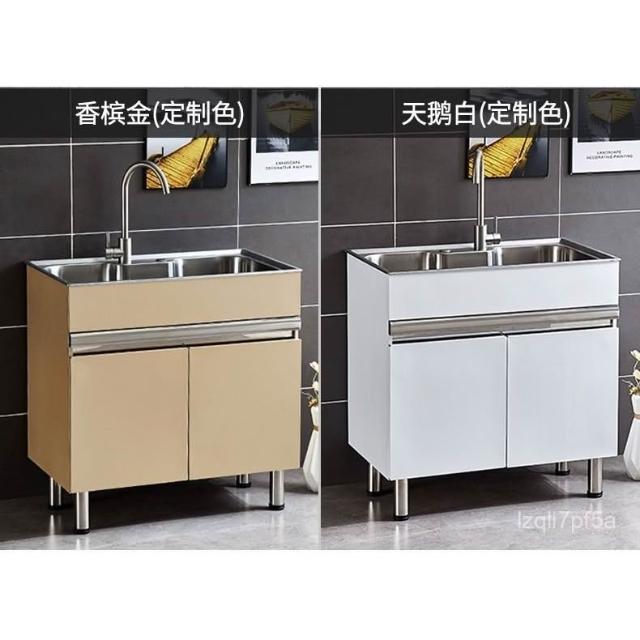 免運 不銹鋼洗衣櫃水槽 水槽池 洗手池 洗手盆 陽臺家用洗衣池 單櫃洗手臺盆 落地式浴室櫃組閤帶搓闆