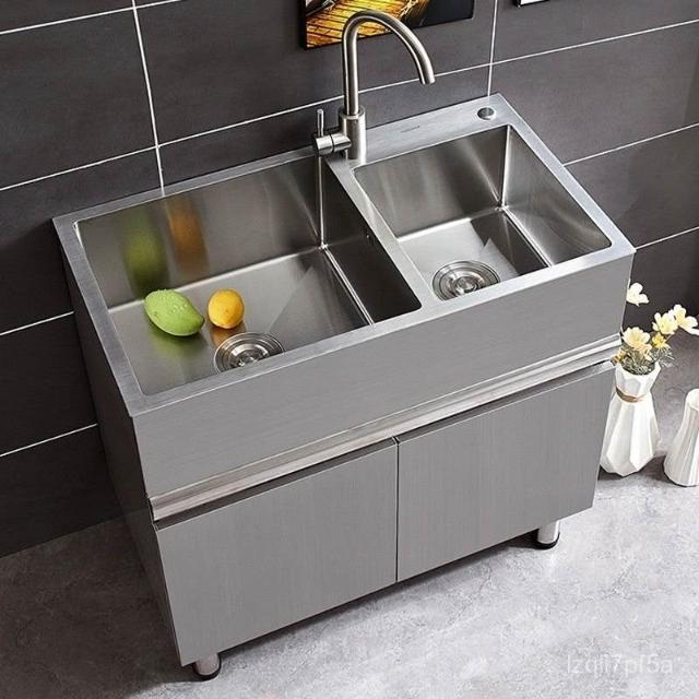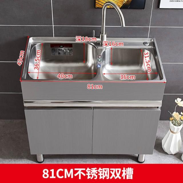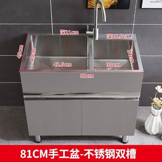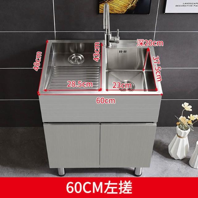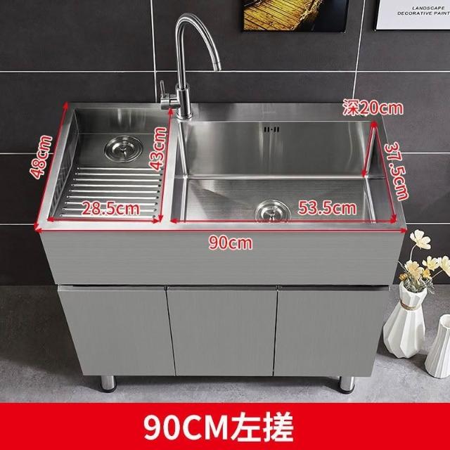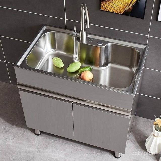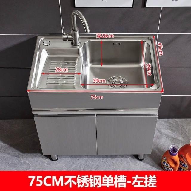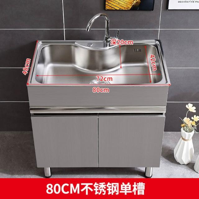 免運 不銹鋼洗衣櫃水槽 水槽池 洗手池 洗手盆 陽臺家用洗衣池 單櫃洗手臺盆 落地式浴室櫃組閤帶搓闆