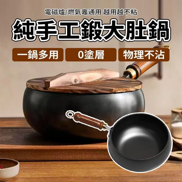 新款 章丘古法大肚鍋 老鐵鍋 不挑爐灶 鐵鍋 深鐵鍋 不沾鍋無塗層 炒鍋深煎鍋 平底炒鍋 純手工鍛造電磁爐瓦斯爐通用