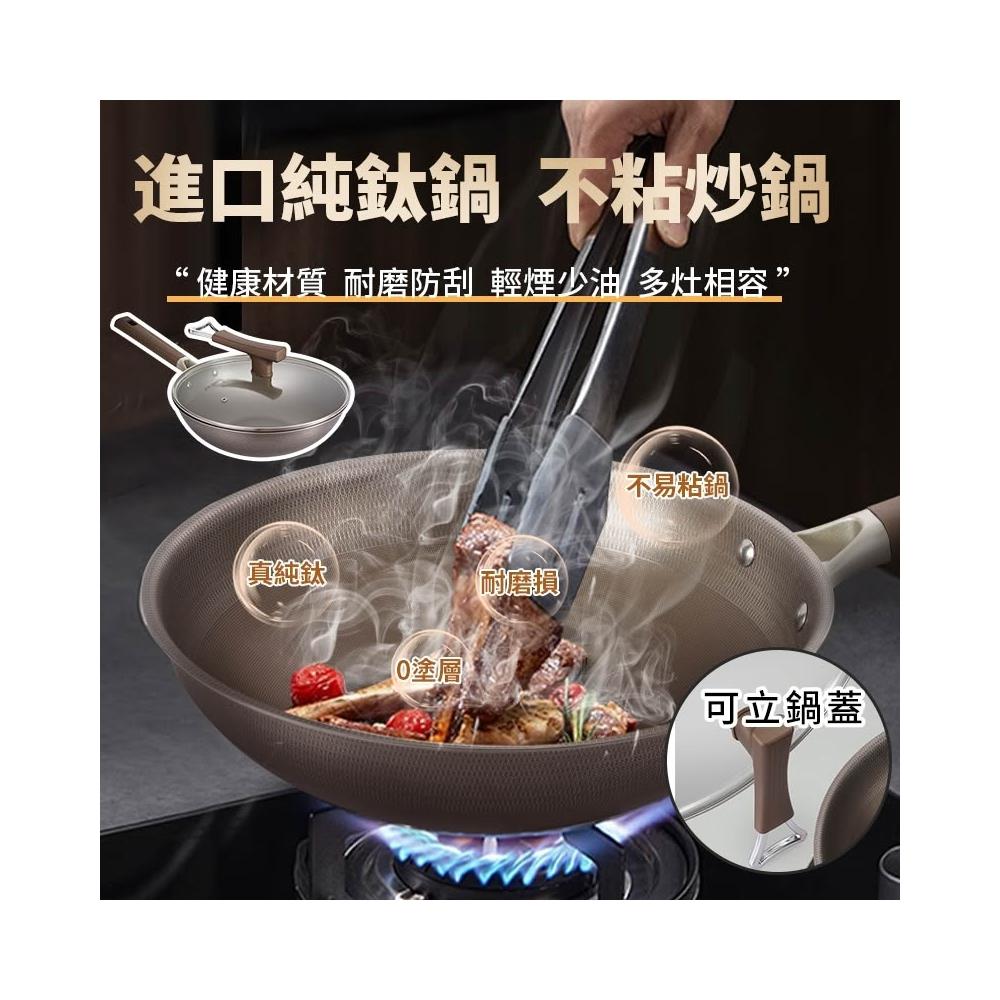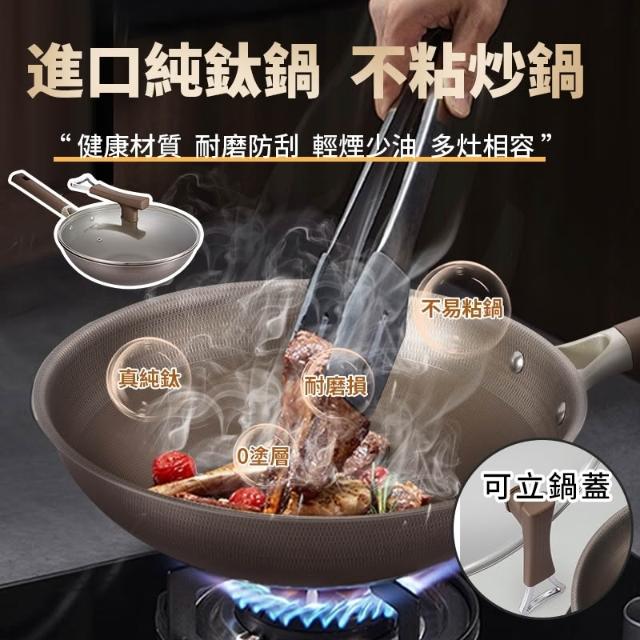 鈦鍋 有鈦鍋 可立蓋 帶蒸籠 特級鈦鍋 雙面鈦 平底鍋 不沾鍋 炒鍋 少油煙 無塗層炒菜鍋 電磁爐燃氣竈IH爐 煎鍋