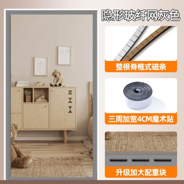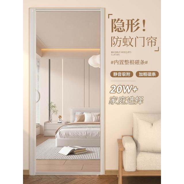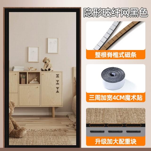 2025新款隱形防蚊門簾玻纖網全磁條側開免打孔魔術貼家用紗門紗窗