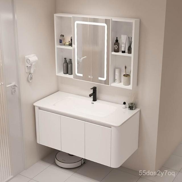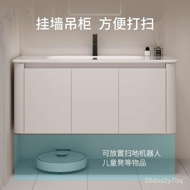 ❤️嚴選--免運❤️ 太空鋁浴室櫃 現代簡約輕奢奶油風圓角浴室櫃 可麗耐一體洗手盆櫃組閤洗漱臺洗臉池