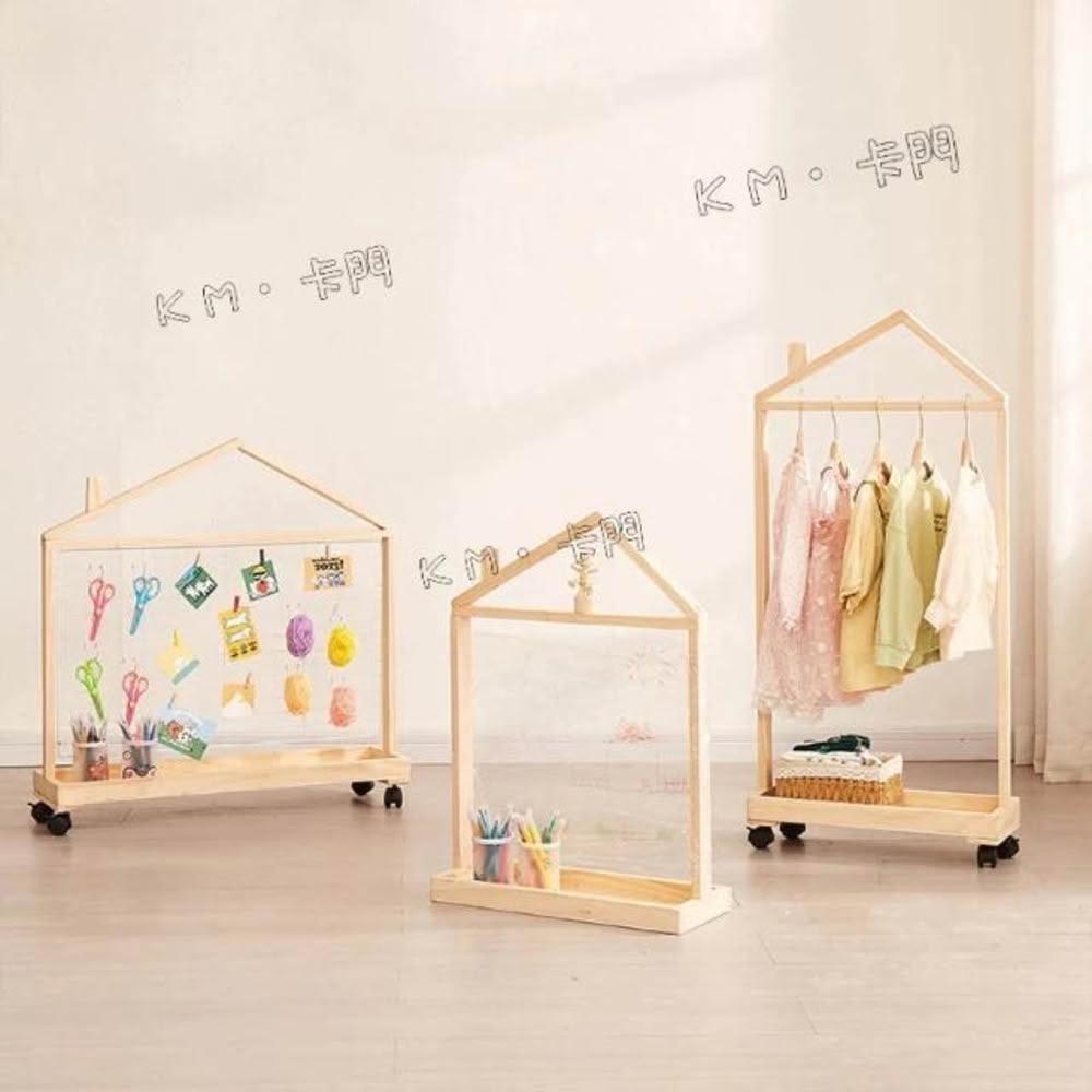 兒童衣架 落地移動架 衣帽架 木質小房子掛衣架 幼兒園 手工diy 展示架子 簡易衣櫥