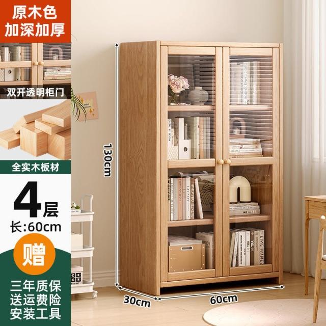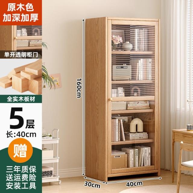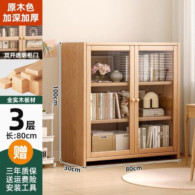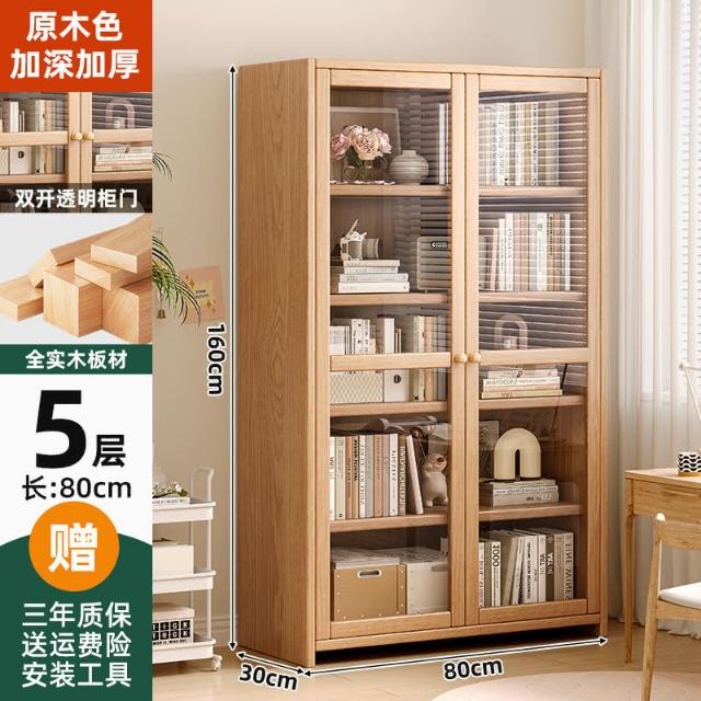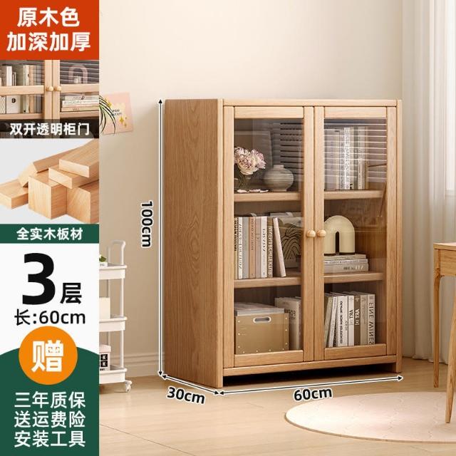 全實木書架落地置物架家用一體靠牆客廳展示柜子兒童收納防塵書櫃