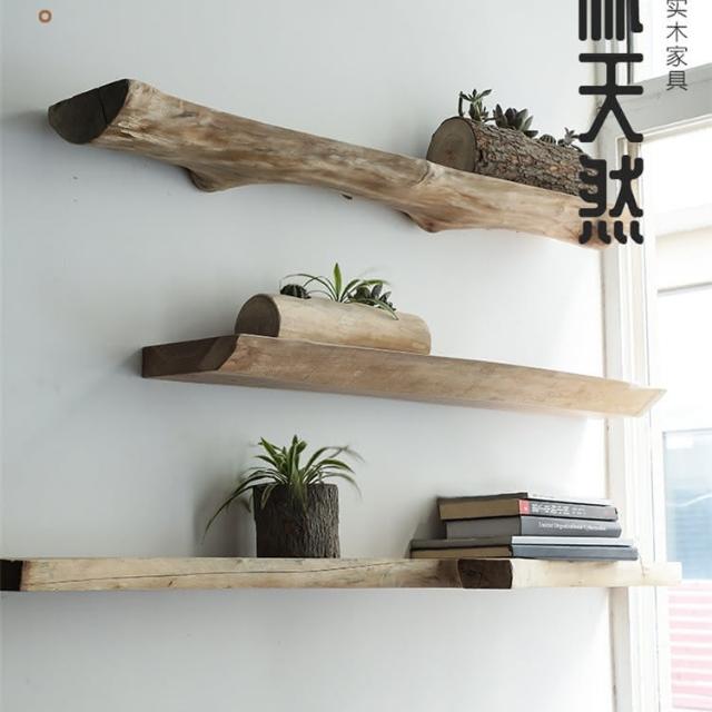 書架牆上置物架香樟木臥室牆牆沙發後電視背景牆原木一字隔板
