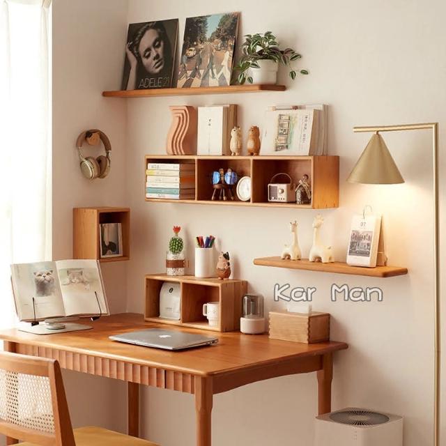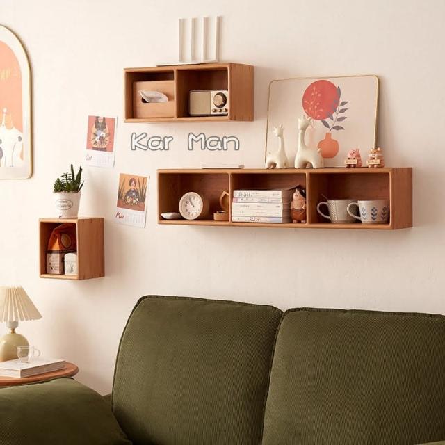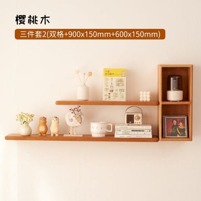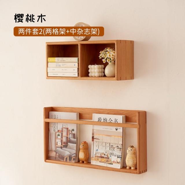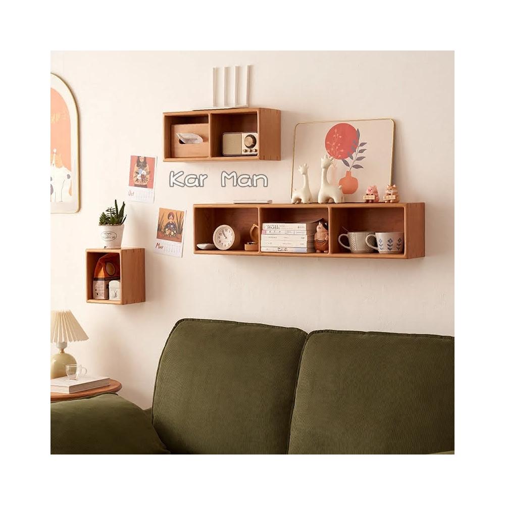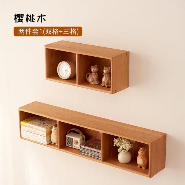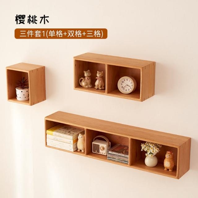實木壁掛式格架牆上置物架掛牆隔板多格收納架客廳牆壁書架櫻桃木