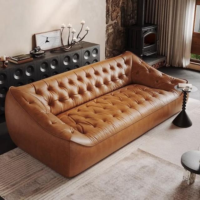 意式極簡真皮沙發客廳小戶型棕色復古豆袋沙發三四人位油蠟皮沙發