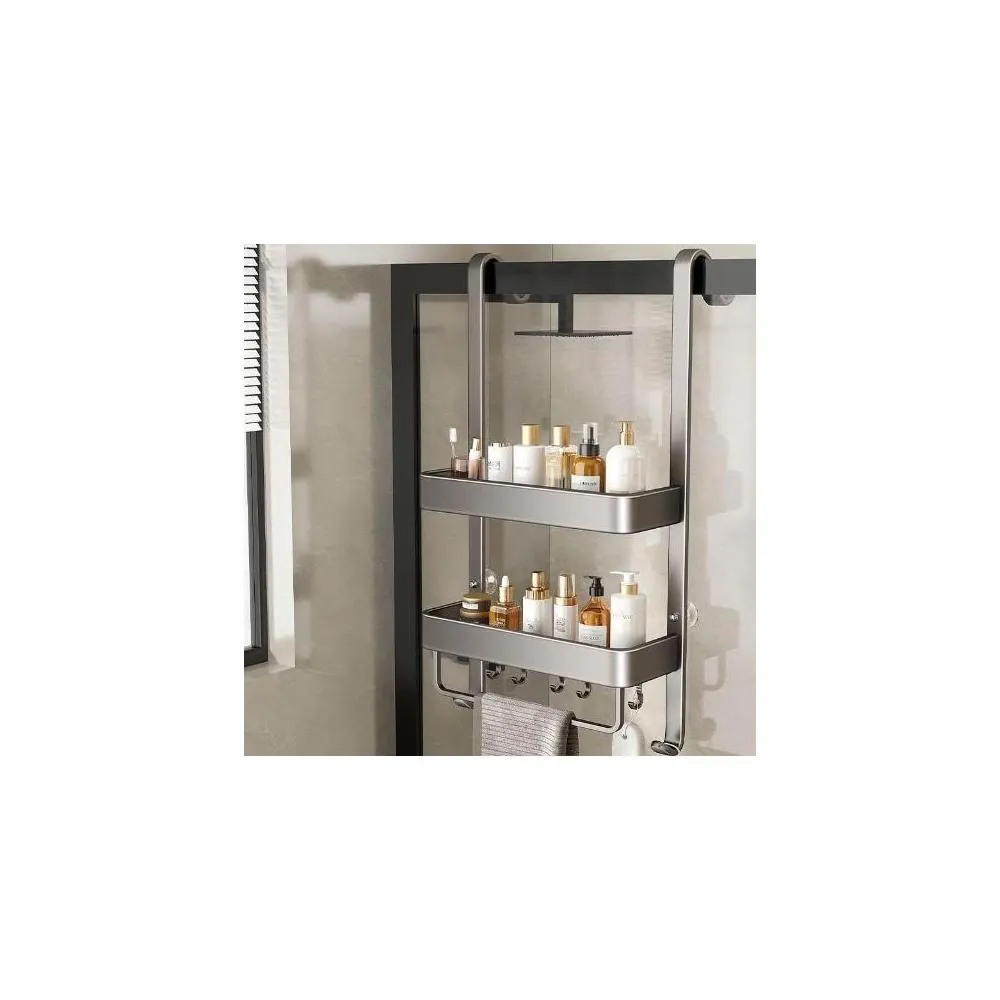 Ouniu丨浴室置物架 淋浴房掛架子 免打孔 洗澡間掛籃 衛生間收納 厠所門後槍灰