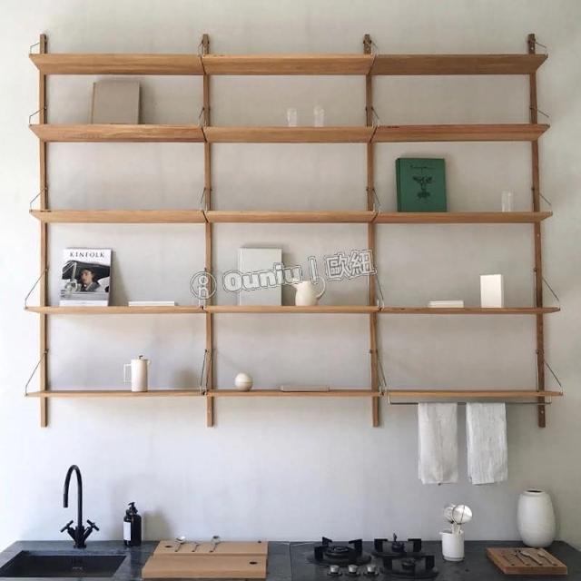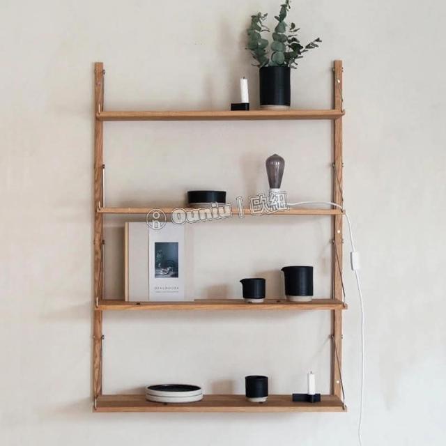 Ouniu丨免打孔實木置物架 一字隔闆 墻上掛壁置物框 收納架 壁裝格闆客廳書房