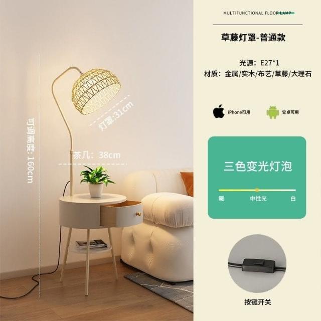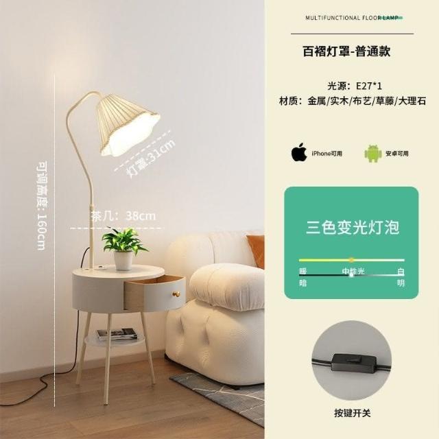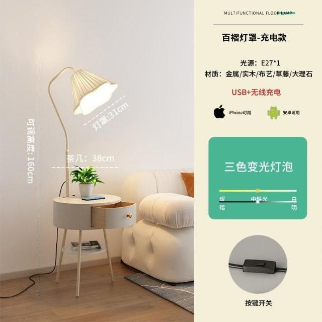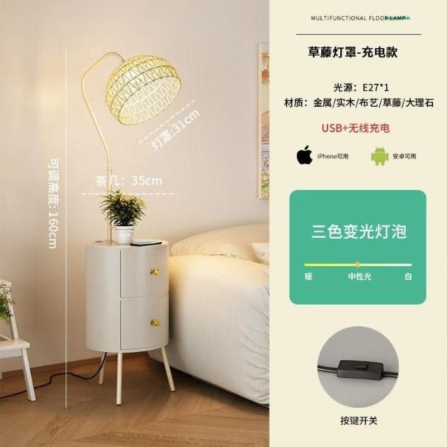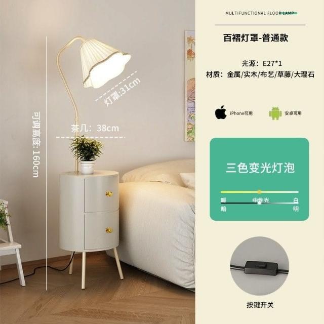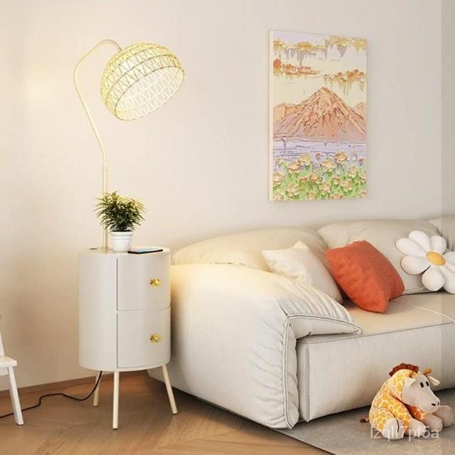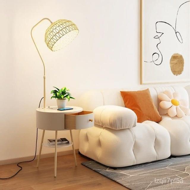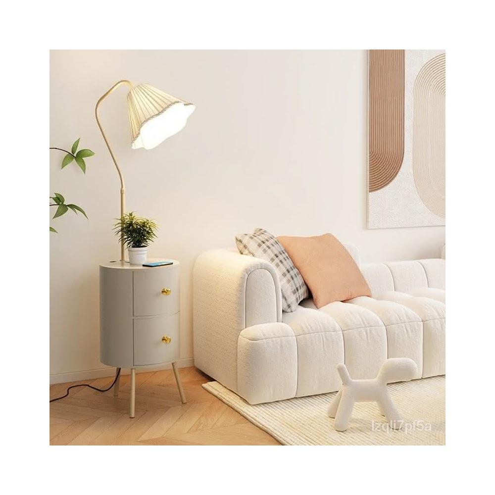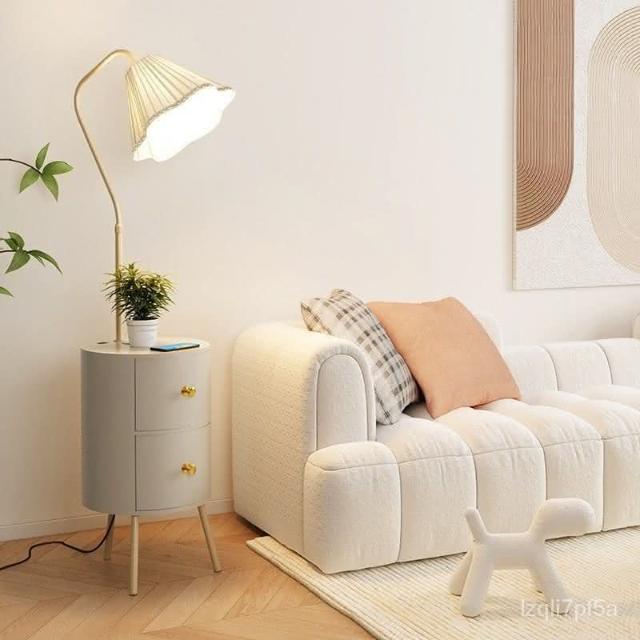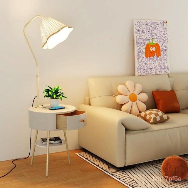 新品直銷 🎁奶油風臥室床頭櫃落地燈客廳沙髮ins風落地式置物茶幾一體立體燈