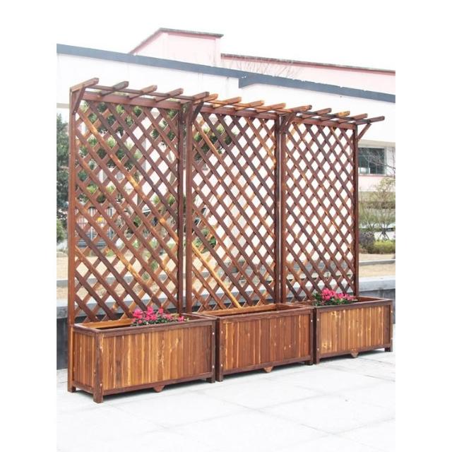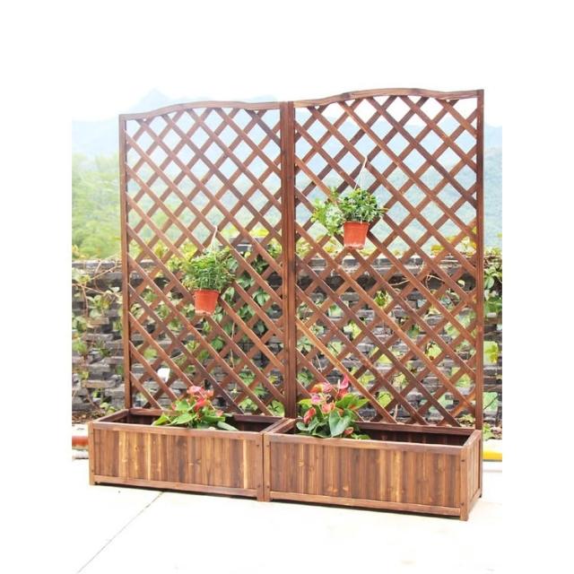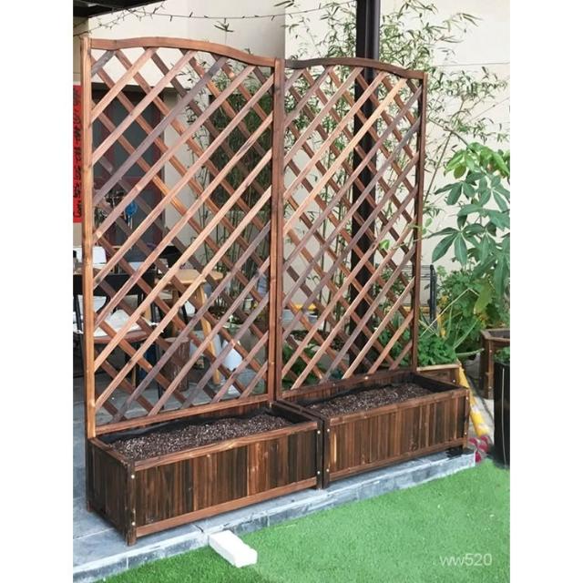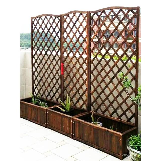 户外防腐木栅栏篱笆围栏护栏阳台装饰屏风庭院隔断网格爬藤花盆架
