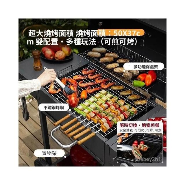燒烤爐 木炭燒烤爐燒烤 燒烤架 煙熏爐 弘軒戶外大型燒烤爐烤架美式BBQ家用烤肉爐別墅庭院木炭燜烤爐子