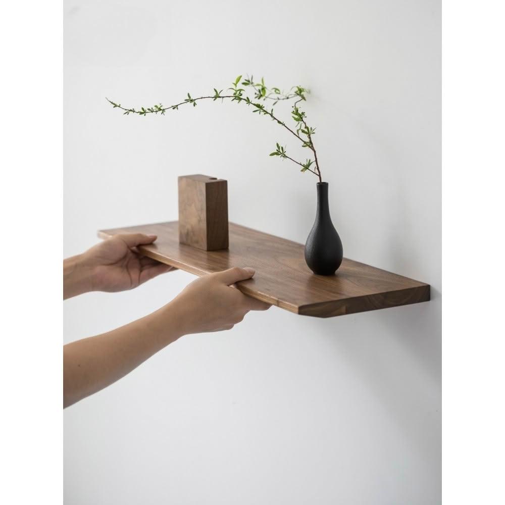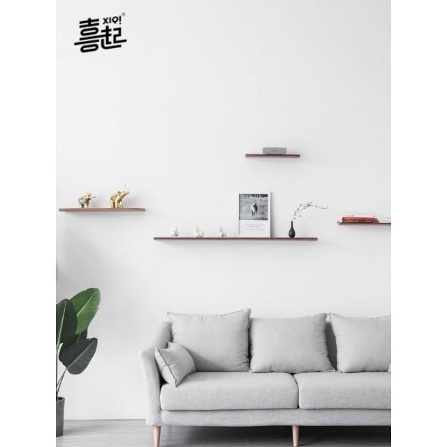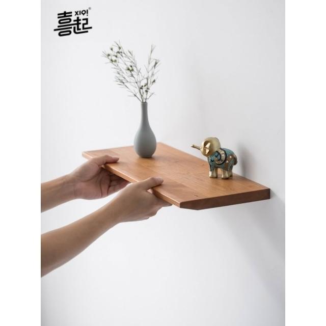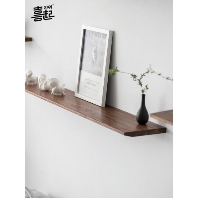 黑胡桃实木墙上搁板 木质墙面一字板置物架 挂墙一字型隔板 層板 實木置物架 一字隔板置物架 壁掛無痕置物架 墻上置物架