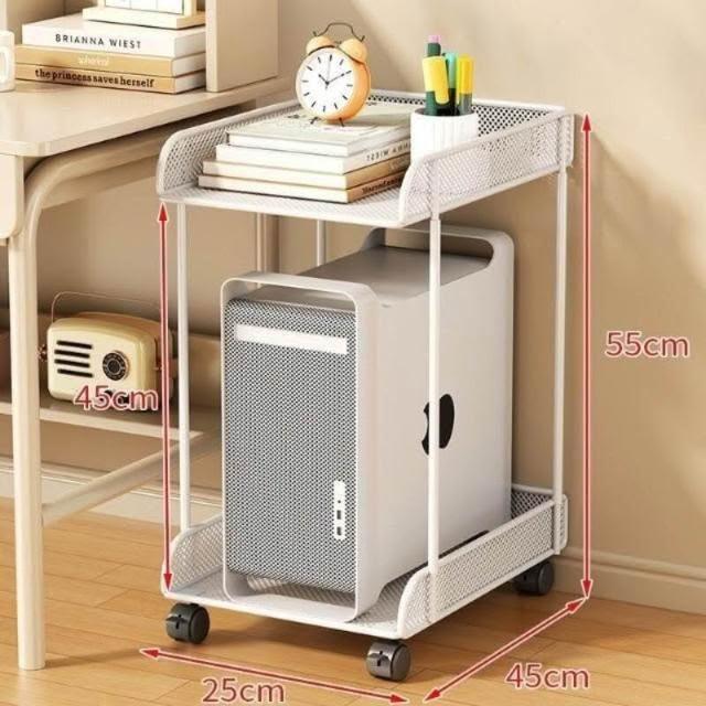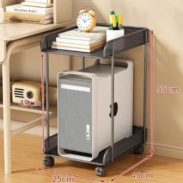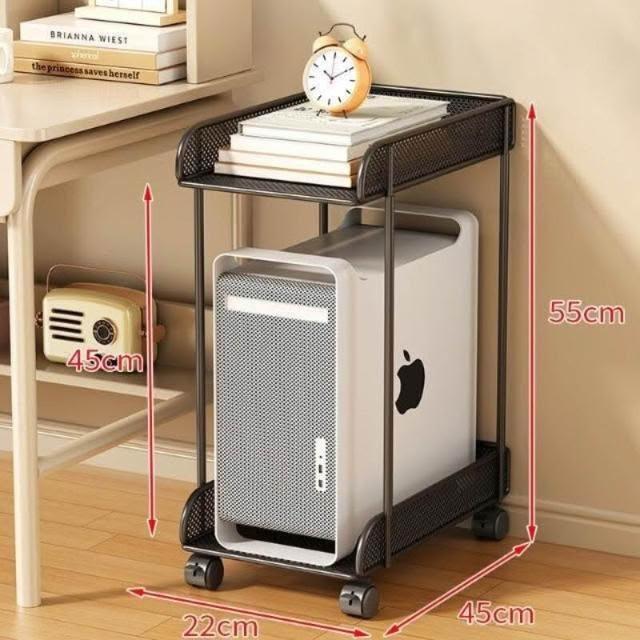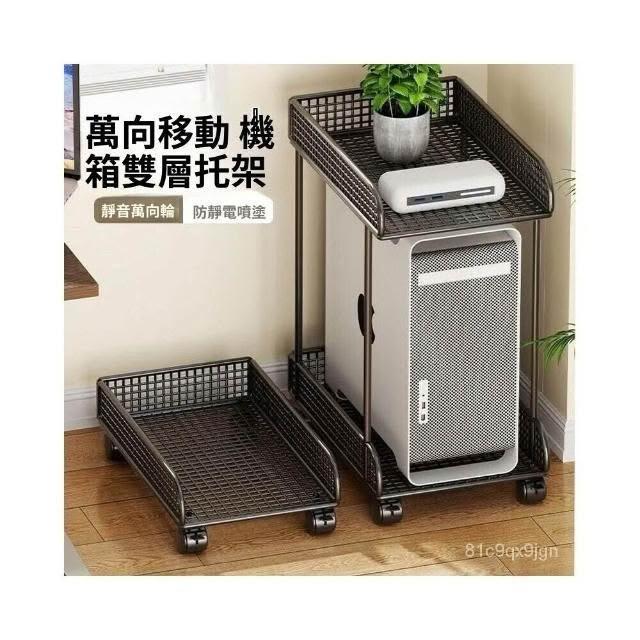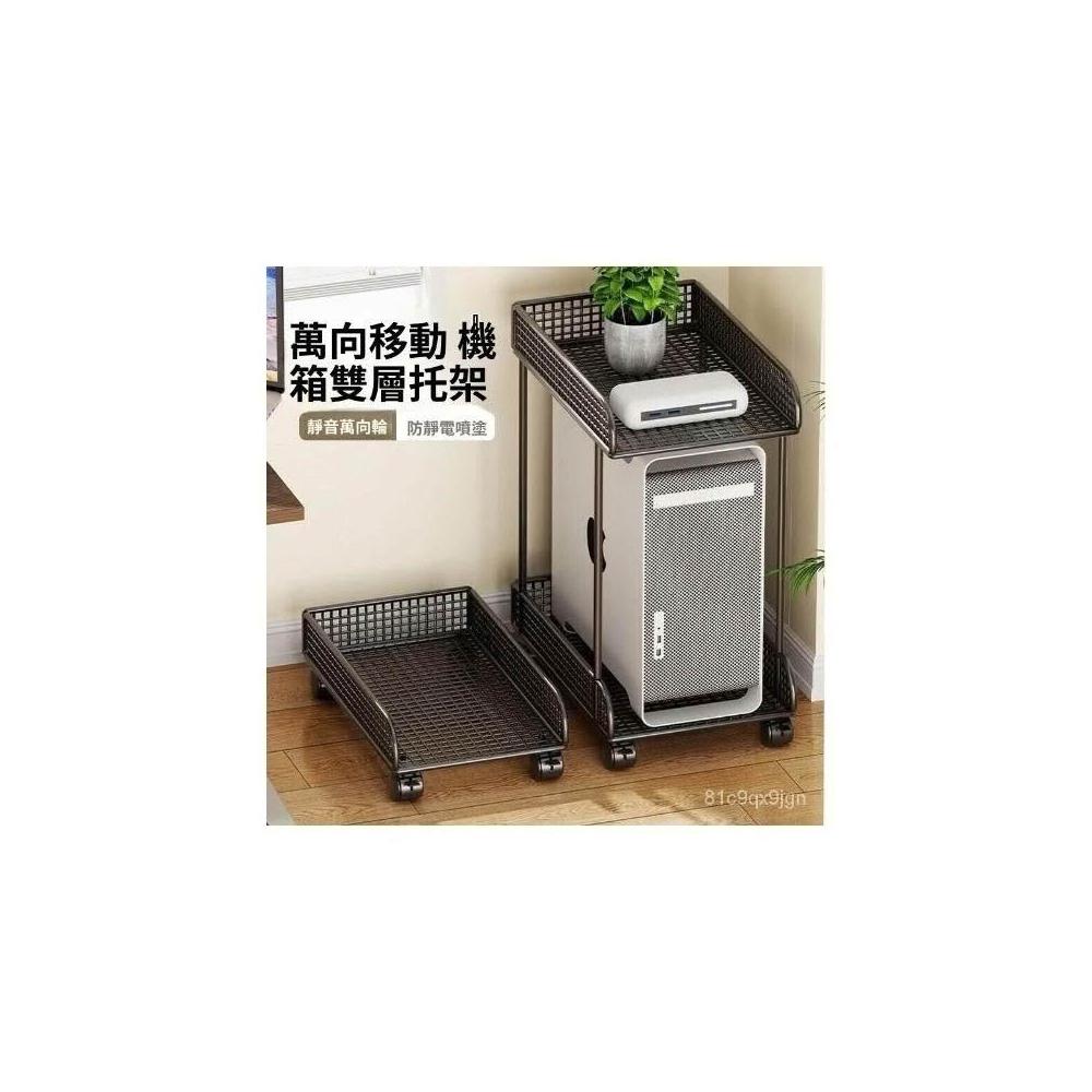 免運免稅 萬嚮輪置物推車 帶輪託架 桌下臺式電腦主機機箱兩層置物架辦公室可移動帶滾輪底座支架託架 電腦主機架 落地增高臺