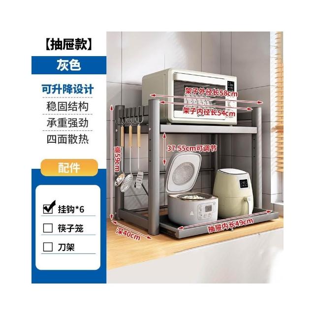 抽拉式廚房微波爐 廚房伸縮置物架 伸縮式微波爐置物架 置物架 伸縮架 烤箱架 氣炸鍋架 電鍋架 廚房收納架