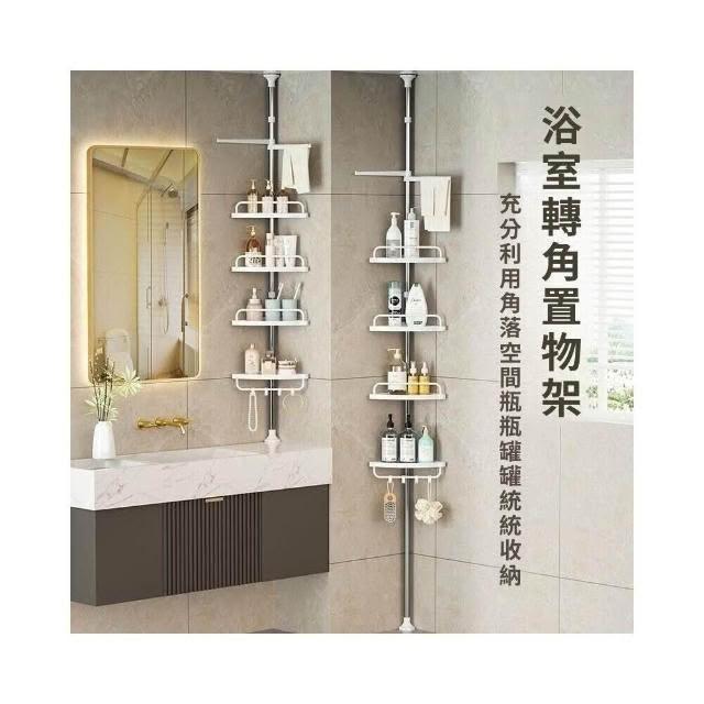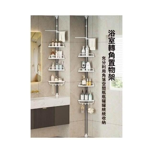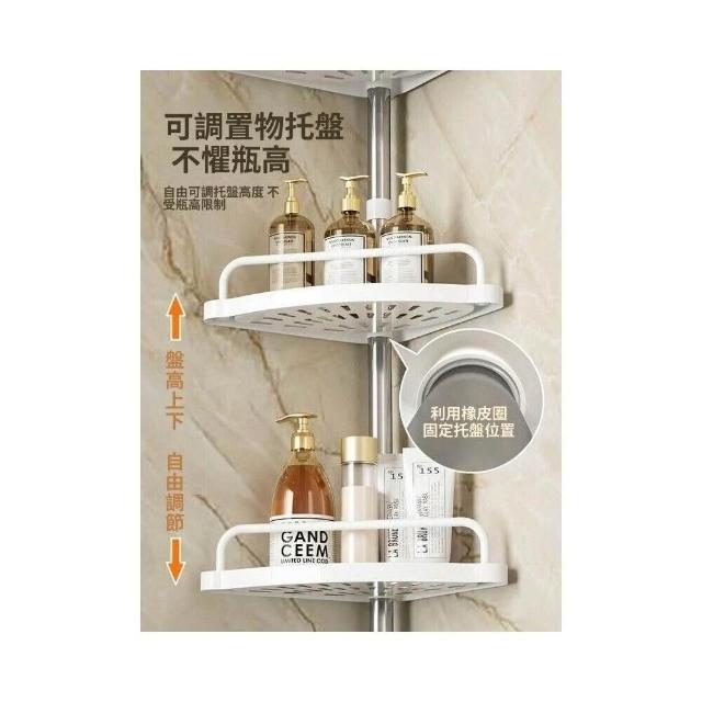浴室置物架 不銹鋼伸縮桿 頂天立地衛生間轉三角瀝水收納層架 免打孔浴室三角架