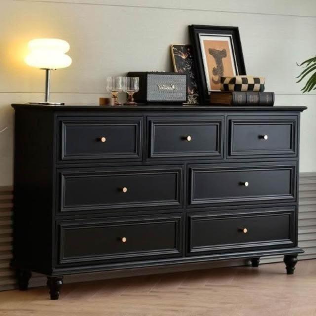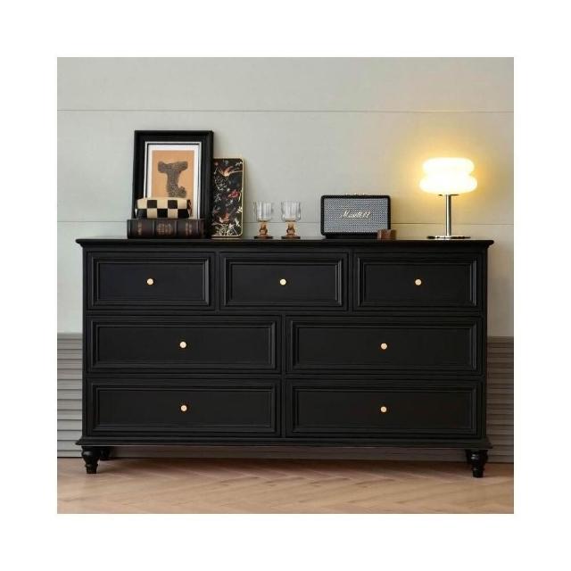 免運 斗櫃 美式斗柜 美式實木五斗櫃臥室黑色簡約抽屜柜子靠墻輕奢立櫃床尾收納櫃客廳