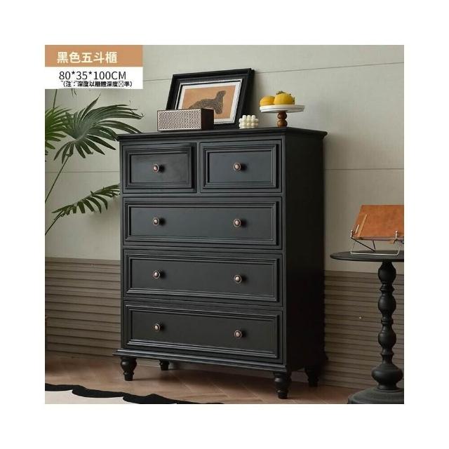 免運 斗櫃 美式斗柜 美式實木五斗櫃臥室黑色簡約抽屜柜子靠墻輕奢立櫃床尾收納櫃客廳