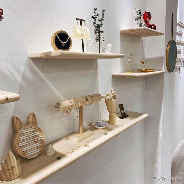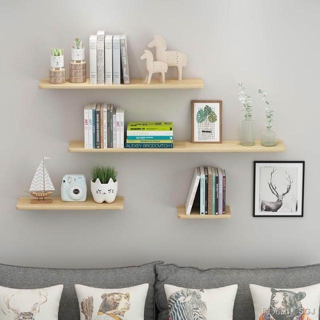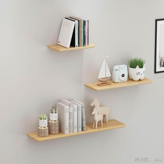 實木一字板置物架 原木牆壁一字隔板置物架壁掛式層架 松木一字形木板電視背景墻裝飾 書架掛墻板墻上置物架 收納架 層板架